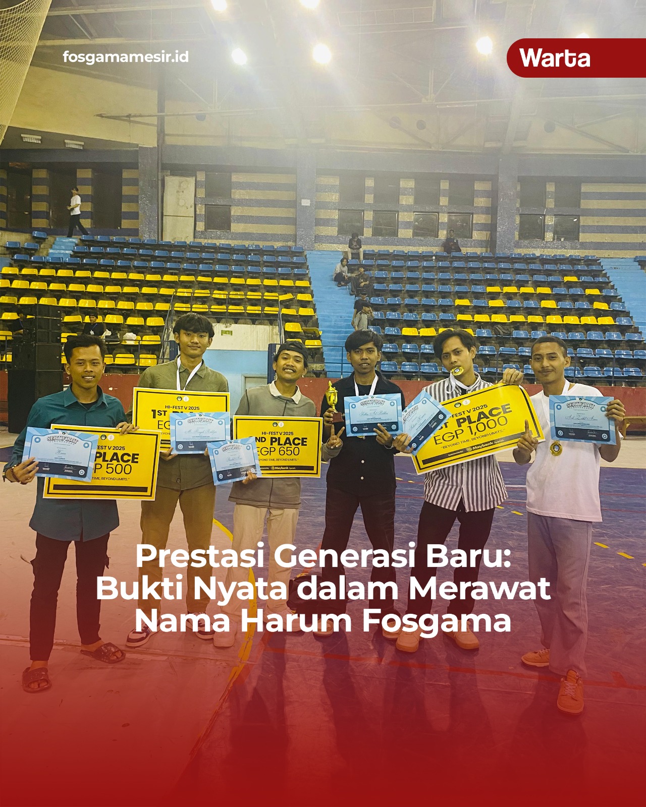 Pada festival yang diadakan HPIM kemarin, terdapat tiga jenis lomba bergengsi yang berhasil dijuarai oleh generasi muda Fosgama. Dalam kategori lomba edukatif, misalnya, Subhan Albukhori dan Ach. Zakil Asror berhasil meraih juara satu dalam lomba Debat Bahasa Arab. Ada juga lomba Baca Kitab (MQK) Fathu al-Mu’in yang berhasil diraih Shoruhal Amir sebagai juara dua. Sedangkan dalam kategori lomba non edukatif, Galang Adi Firmansyah sukses menyabet juara satu dalam lomba Badminton. Tentu hal ini menjadi bukti bahwa masa depan Fosgama akan tetap cerah dan bersinar dengan lahirnya generasi baru berkualitas.
